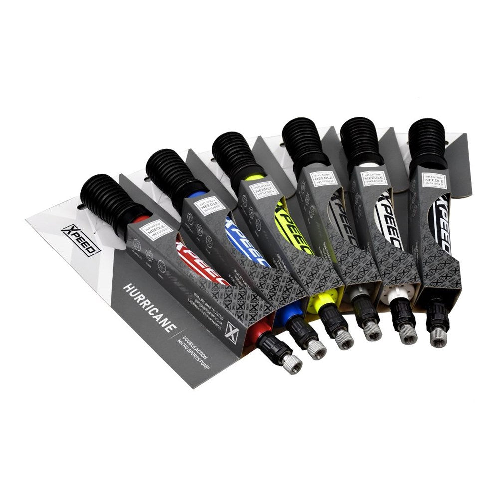 Quick, light and built for the sidelines! The Xpeed Compact Double Action Pump is perfect for coaches, players and PTs on the move. Designed to inflate sports balls and bike tyres fast, it's small enough to toss in a gym or team bag without taking up space.